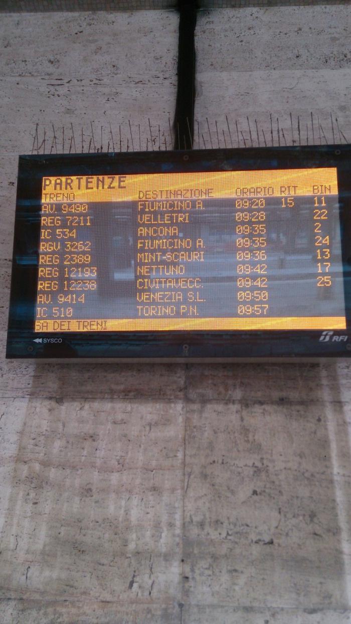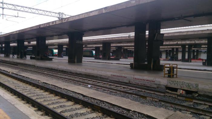 Взяв чемоданы, отправились пешком 3 км до вокзала Термини (Termini). Время в пути до вокзала было рассчитано правильно – 40 минут быстрым шагом. По дороге у чемодана стерлось колесо, хорошо, что их 4, и это не машина. На вокзале купили воды и крекеры, стали ждать поезд.