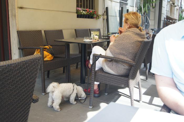 Отношение к домашним животным не хуже, чем к хозяевам. При нас: официант принес вино женщине и небольшую миску с водой для собаки на одном подносе