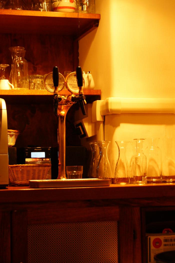 Зашли в чудную тратторию Fusco на Via Statilia, 14. Я взял карбонару (которая оказалась менее вкусная, чем готовит моя Булочка, но все равно вкусная, особенно, если бекон последним ешь). А Анечка ела что-то похожее на болоньезе, но с беконом. И, конечно же, домашнее разливное вино, которое наливают из таких же кранов, что и пиво.