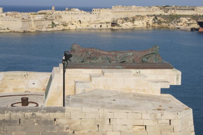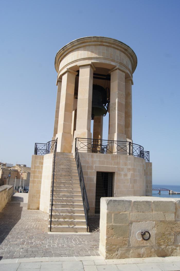 Расположено это непреступное сооружение на оконечности полуострова. К сожалению, внутрь мы не смогли попасть. В будни он закрыт, т.к. там располагается сейчас полицейская академия, но по воскресным дням там устраивают костюмированные представления для всех желающих. Далее мы направились к нижним садам Барракка. Их, кстати, видно с верхних. Прежде, чем попасть в сады, мы наткнулись ещё на одну достопримечательность: лежащая у моря статуя солдата и величественный колокол Осады – напоминание о погибших во Второй Мировой Войне.