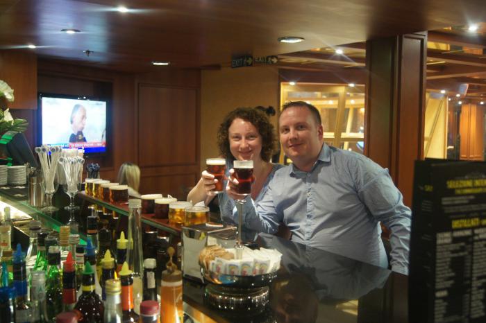 Каждый день на корабле проходил по какой-то тематике: white party, привет из 80-х, хиппи и тд. Сегодня нас ждал гала ужин, а перед этим фото с капитаном, а также фуршет (шампанское, фраки, официанты, вечерние платья, драгоценности и прочий пафос). Отказались фотографироваться с капитаном, какой-то он не настоящий. Мы снова оказались в Marco Polo, нас подкупил суп из лангустов на гала ужин. Суп ничем не отличался от обычного рыбного. Разочаровавшись, мы пошли заливать свою грусть-печаль метром пива и ждать начала шоу.