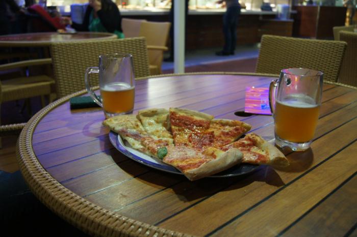 Мы купили пива, набрали пиццы и направились на корму смотреть, как мы отшвартовываемся и отплываем.
