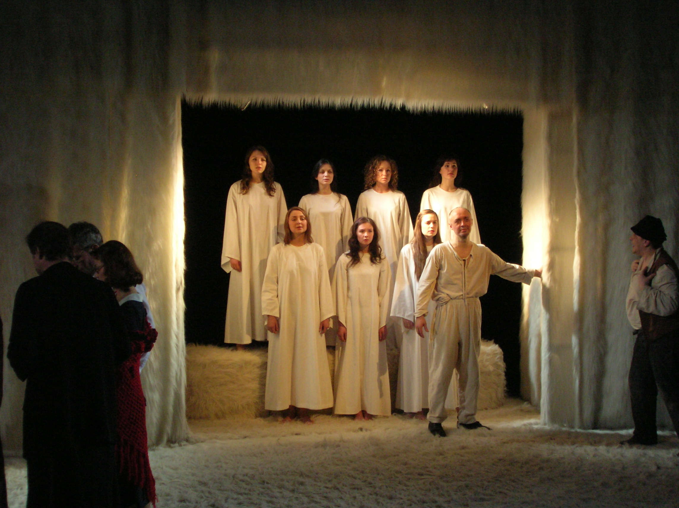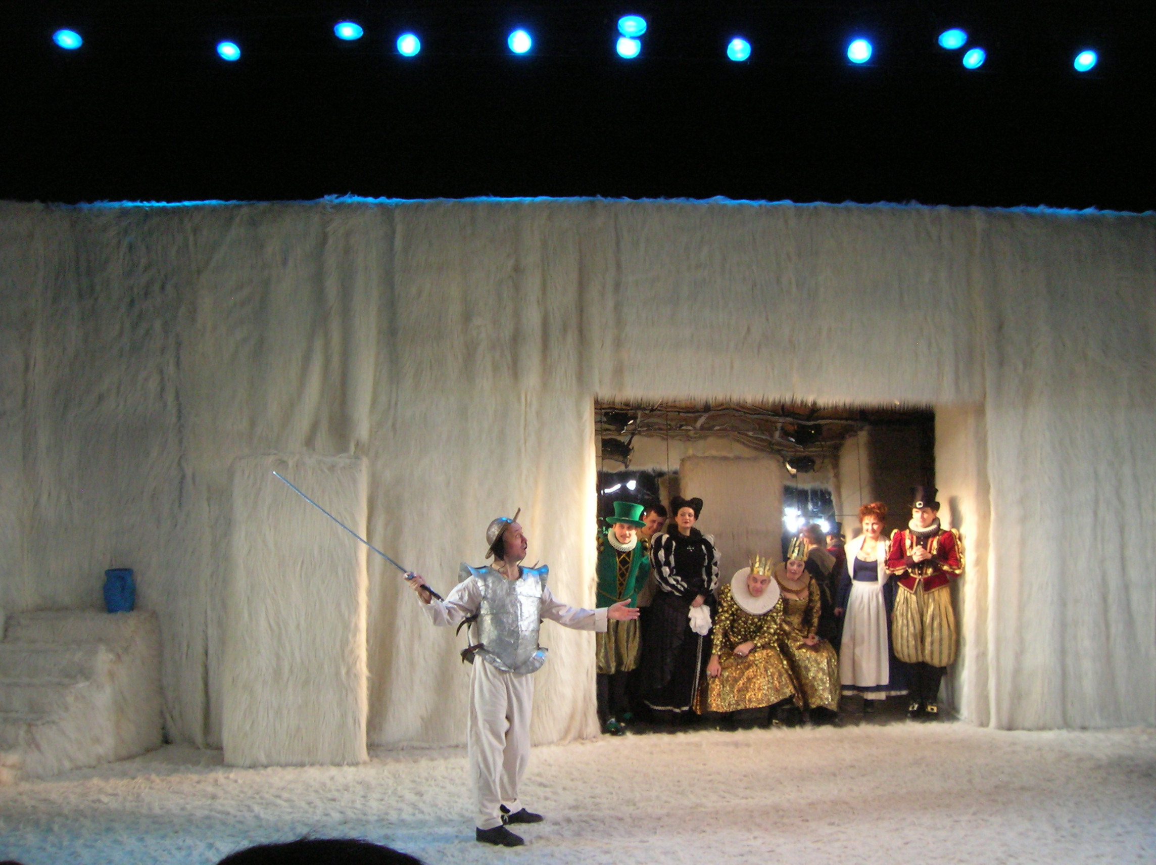 Сам театр крохотный, камерный, где с любого места всё хорошо видно и слышно. Но при такой бешенной популярности помещение театра уже не соответствует и наконец свершилось. Совсем недавно, где-то месяц назад, прямо напротив здания театра, тут же в саду, построили и открыли НОВОЕ ЗДАНИЕ ТЕАТРА. Но, как у нас бывает зачастую, открыли (сама ВАЛЯ ленту резала), шарики разноцветные в небо запустили, шампанское выпили, икру поели, а потом стали что-то доделывать, исправлять, переделывать. Обещают в мае открыть НОВЫЙ ТЕАТР. Ладно, подождем еще.
