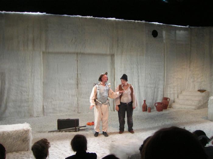 Инсценировку великого романа Сервантеса по заказу театра Вахтангова Михаил Афанасьевич написал в 1938 году. Надо сказать, что Булгаков Боготворил роман и даже выучил испанский язык, чтобы читать роман в подлиннике. Он отказался от новаторства, очень бережно отнёсся к тексту, хотя на него нажимали и требовали осовременить текст. Пройдя бесчисленные мытарства с попыткой сдать, а потом поставить пьесу в театре Вахтангова, Мастер умирает. Уже после смерти Булгакова его инсценировка Дон Кихота была впервые поставлена на сцене заштатного театра имени Островского в городе Кинешма в апреле 1940 года.