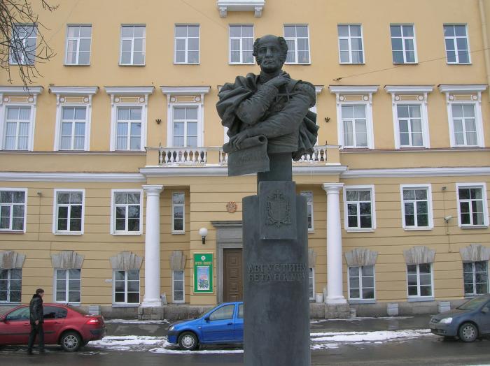 Перейдя Обуховский мост, оказался на предмостной площади у бюста очень интересного человека. Одно имя его чего стоит… Августин Педро дель Кармен Доминго де Канделярия де Бетанкур и Молина… потомок королей Канарских островов. Ученый с мировым именем, блестящий инженер он возглавлял строительство в Петербурге в начале 19 века. Именно Бетанкур рекомендовал Александру I молодого и талантливого француза Огюста Монферрана. Августин Бетанкур один из основателей мостостроения в России. Именно по его проекту был учрежден Институт Корпуса Инженеров Путей Сообщения, где он стал первым директором. Теперь понятно, почему именно его бюст установлен напротив Университета Инженеров Железнодорожного Транспорта.