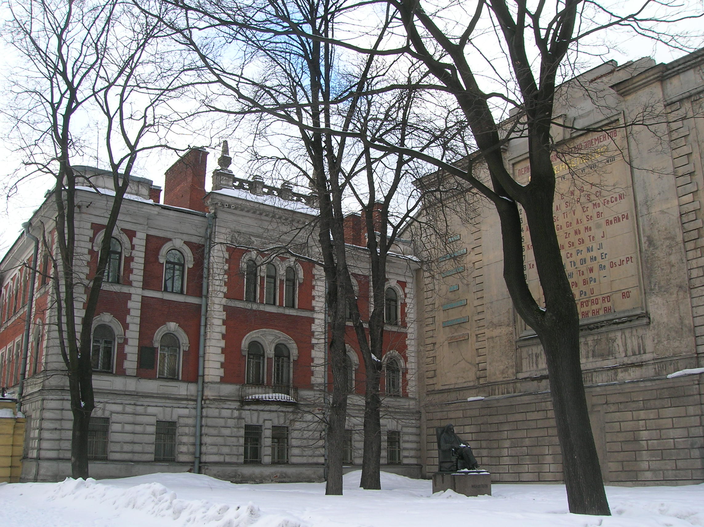 Справа открылась перспектива Загородного проспекта. Технологический институт — одно из старейших высших технических учебных заведений. Он был открыт в 1831 году. Затем «Красный дом» (Московский пр.,19) получивший свое название по цвету стен. В нем 10 лет с 1897 и до своей кончины в 1907 жил Менделеев. Перед домом памятник Дмитрию Ивановичу, а на фасаде соседнего дома увековечена ТАБЛИЦА ученого. А еще Дмитрий Иванович водку сделал именно ВОДКОЙ, сорокаградусным национальным напитком. Тьфу на неё. Не пью и другим не советую.
