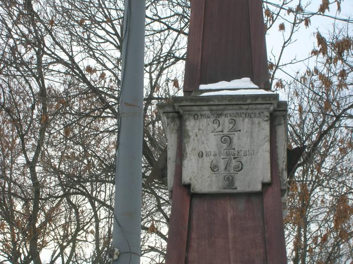 Торжественный верстовой столб из гранита и мрамора. Такой столб, что стоит у Обуховского моста, считался главным, основным. На нем кроме расстояний до Москвы и Царского Села или до Петергофа (столбы на Петергофской дороге) располагались еще и солнечные часы. А вот на других, обычных столбах, которые в форме небольших пирамидок, одни лишь расстояния. И только на двух парадных дорогах были гранитно-мраморные верстовые столбы, это дороги в блестящие загородные императорские резиденции… Царское Село и Петергоф. Данные столбы были установлены в правление Екатерины II, автор — блистательный архитектор Антонио Ринальди. Правда есть данные, что и не Ринальди вовсе, а Жан-Батист Валлен-Деламот эти столбики сотворил, но мы оставим всё как есть и будем говорить…Ринальди.