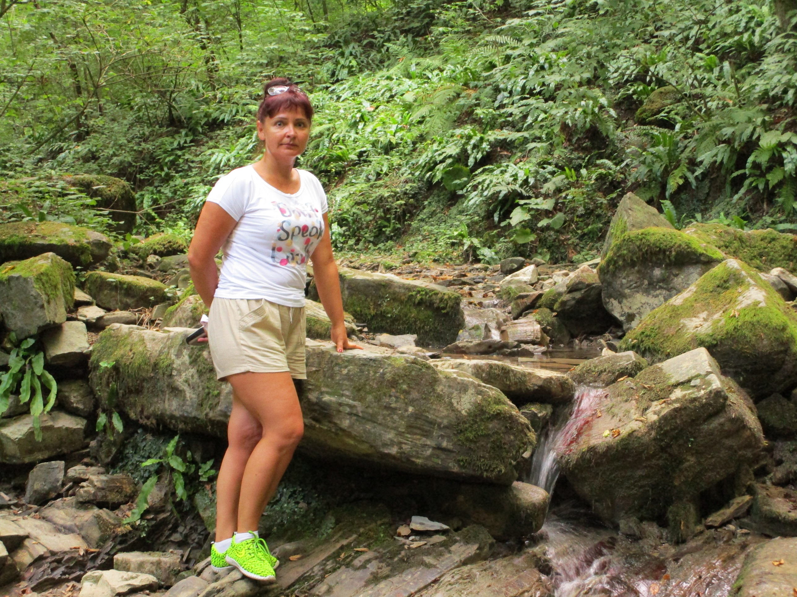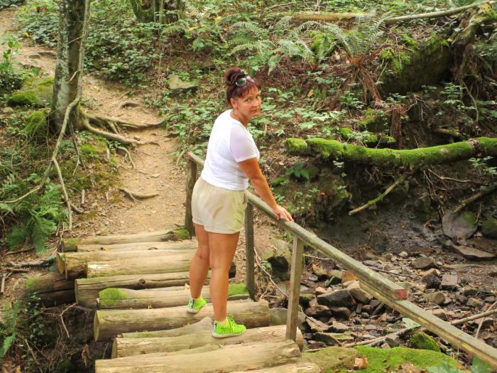 Оксана, не смотря на жару и влажность, не сдается и не отстает от меня ни на шаг:
