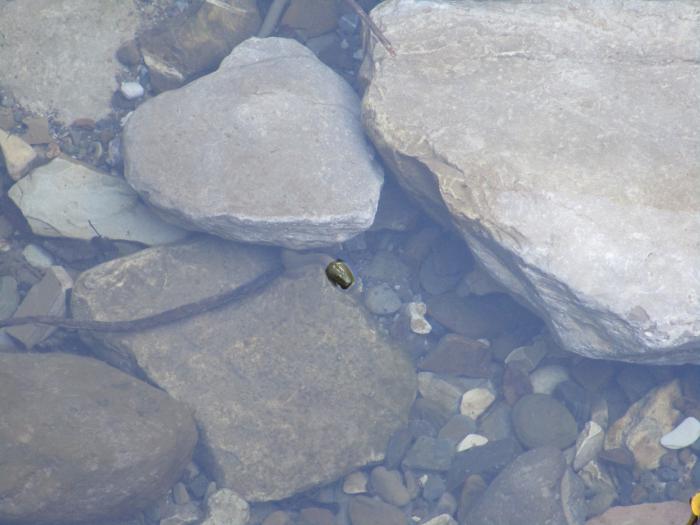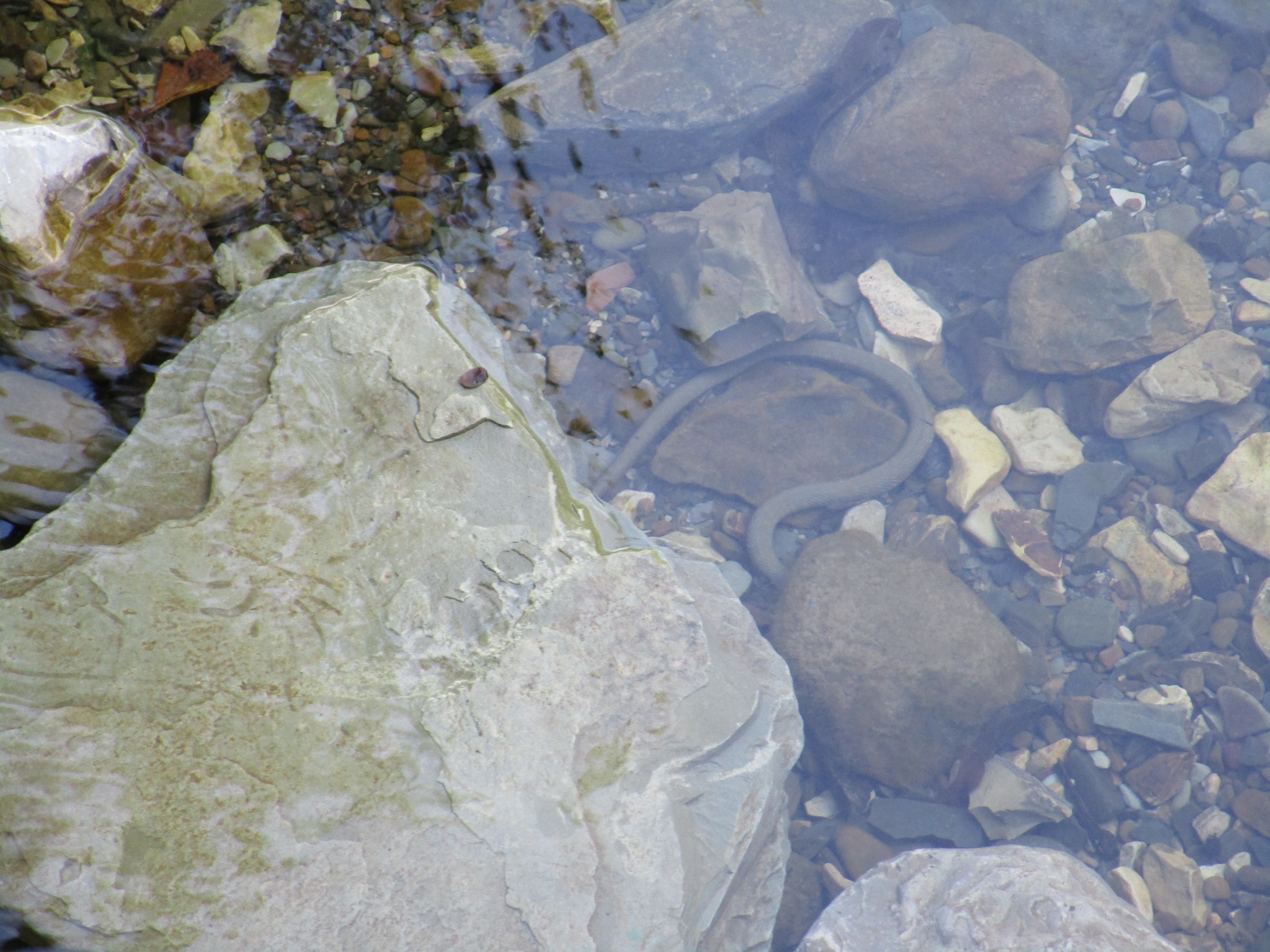 Ущелье Свирское образовано небольшой речушкой под названием Свирка. Здесь я и заметил небольшую змею, плавающую в воде: