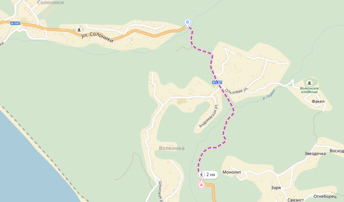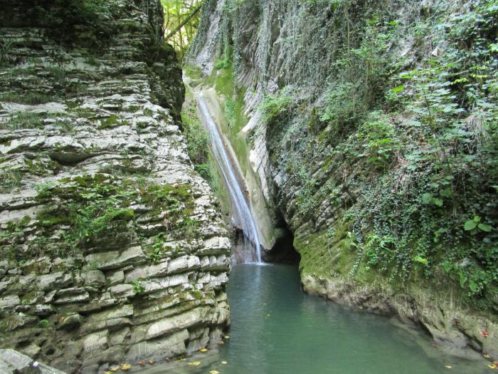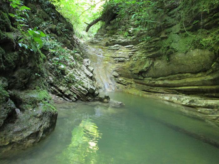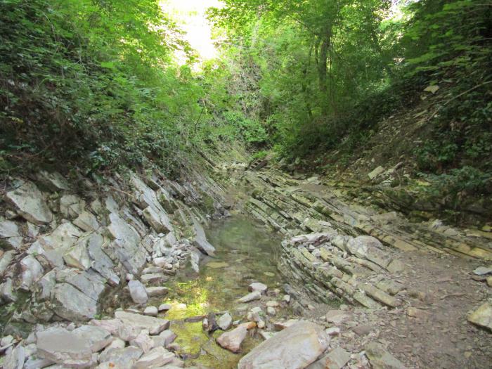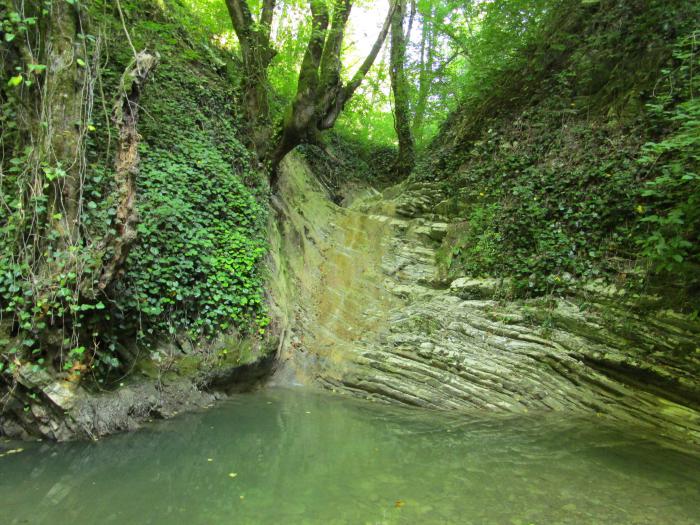На следующий день, с утра пораньше, взяв с собой воды, мы отправились пешком в Крабовое ущелье. Эта самая близкая от нашей гостиницы природная достопримечательность Лазаревского (около 2 км). Ее особо и искать не надо, прямо по улице Калараша до самого конца:
