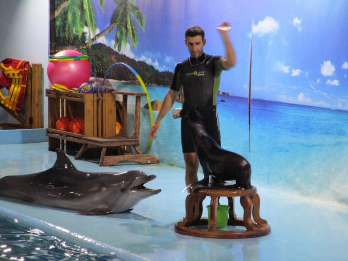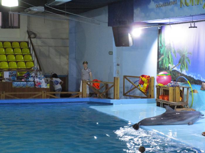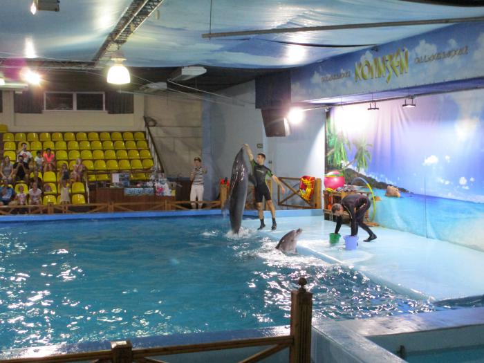 Вернувшись, мы сразу отправились на море отмачивать усталые ноги и добавить еще немного загара. А вечером купили билеты в дельфинарий, расположенный здесь же в центральном парке: