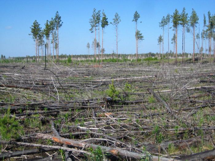 20 км. Местами сгоревший лес просто повален ветром, руки лесорубов до него так и не дошли: