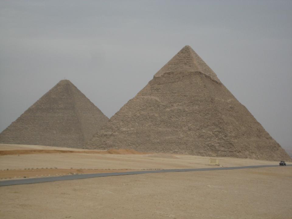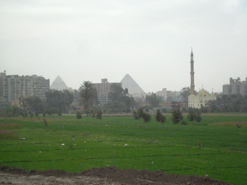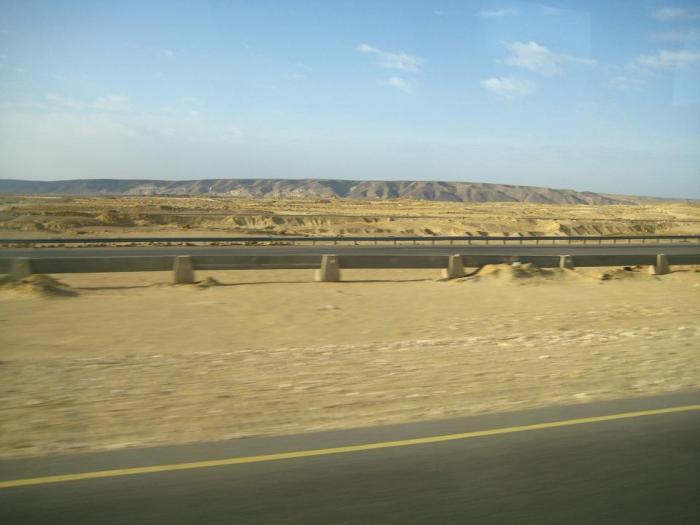 Экскурсия на пирамиды включает в себя посещение национального музея Египта, самих пирамид и сфинкса. А также (как это принято на всех экскурсиях в Египте) различных «фабрик» ароматических масел и ювелирных изделий, «музея» папируса и всякой подобной лабуды, на которую уходит много драгоценного времени, отрываемого от самого главного — пирамид. Сами пирамиды находятся на плато Гиза, где-то под Каиром. Где точно я и понятия не имел. От Хургады до Каира более 400 км и поэтому ехать предстояло всю ночь. Выехали мы примерно в 1 ночи. Автобус большой и комфортабельный, был включен телевизор, и те, кто не спали могли смотреть фильм BBC про Египет на русском языке. Вскоре наступил рассвет и можно было любоваться пейзажами за окном.