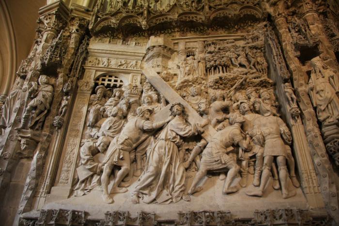 Этот небольшой город (37 место по численности (около 200 000) населения ) расположился на севере Испании. Когда-то он был столицей Кастилии. Чистенький, спокойный, миролюбивый. Основная достопримечательность — кафедральный собор. La Catedral de Santa María de Burgos был заложен в 1221 году. Вдумаемся в эти цифры! В 1221 году! Лично мне ни представить, ни, тем более понять как это всё удалось сохранить в таком виде, не получится. Я могу прикоснуться к камням — обычные камни, провести ладонью по плите — холодная. Пытаюсь перенести своё воображение туда, в тринадцатый, не получается. Удивительно! Портал времени открыт для каждого, но не всякий сможет шагнуть сквозь столетия. У меня не получилось.