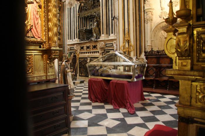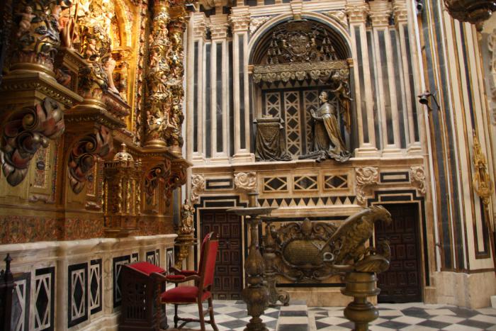 Гробница Дон Гонсало Лопес де Поланко и доньи Леонор Миранда, авторов алтаря. Умер он в 1505 году, она в 1503.