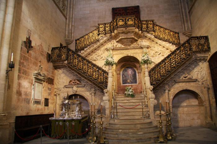 И тем не менее, внешний вид и внутреннее великолепие собора были выстраданы в фантазиях французов. Позолоченная лестница.