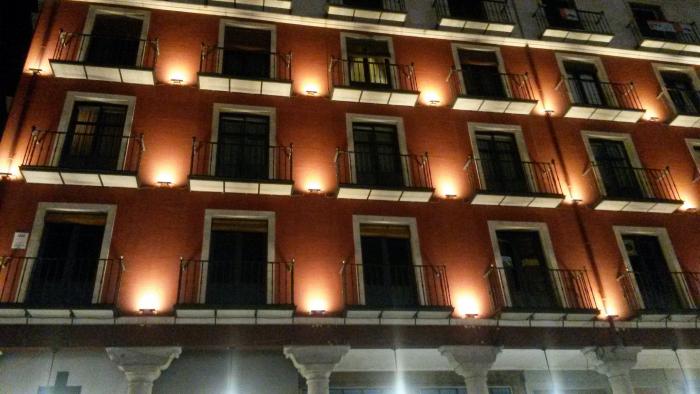 Наш отель мы нашли за церквушкой iglesia de Santiago, буквально в пяти метрах от неё. Фотография сделана уже вечером. Гостиницу и храм разделяют какие-то 5 метров.