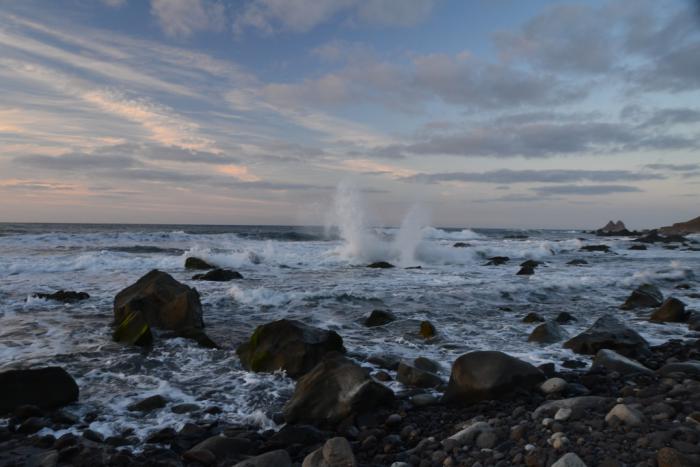 Я даже умудрилась окунуться в океан. Как это ни странно, вода в середине марта была довольно теплая, но полноценного купания не получилось: было очень страшно. Людей вокруг ни души (да и кто кинется за тобой в океан?), из-за отлива глубина ушла далеко от берега, а на мелководье волны были очень опасными и неудобными.