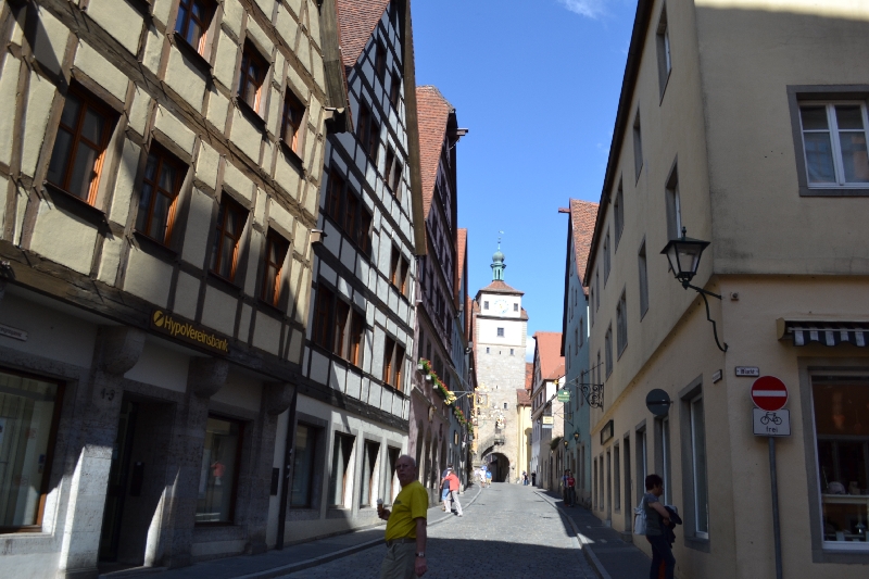 На неё можно было взобраться по крутой лестнице и совершить круговую прогулку вокруг всего городка на уровне крыш. Городок был неспеша пройден за 1,5 часа вдоль и поперек. И отобедавши в одном из кафе, расположенных на улице, прямо на проезжей части, покидал этот чудный городок с приятными воспоминаниями. Этот город я тоже настоятельно рекомендую для визита. По крайней мере, я в своей жизни еще ни разу не встречал целый средневековый город, таким, как он был 800 лет назад, в первозданном виде и это очень привлекает. Удивительно, что и 800 лет назад немцы жили в весьма неплохих домах, многие россияне и сегодня не имеют возможности жить в таких условиях. И как всегда удивляет и восхищает стремление все сохранить. Да, внутри помещения переделываются под современное жилище. Но снаружи ничто не показывает об изменениях, нет ни внешнего блока кондера, ни пластиковых окон, ничего. И не всегда можно доехать до своего дома, скорее всего придется оставлять автомобиль на стоянке. И несмотря на все видимые неудобства желание жить в таком средневековом строении перекрывает все эти проблемки. Вот это и есть любовь к Родине, к истории и традициям.