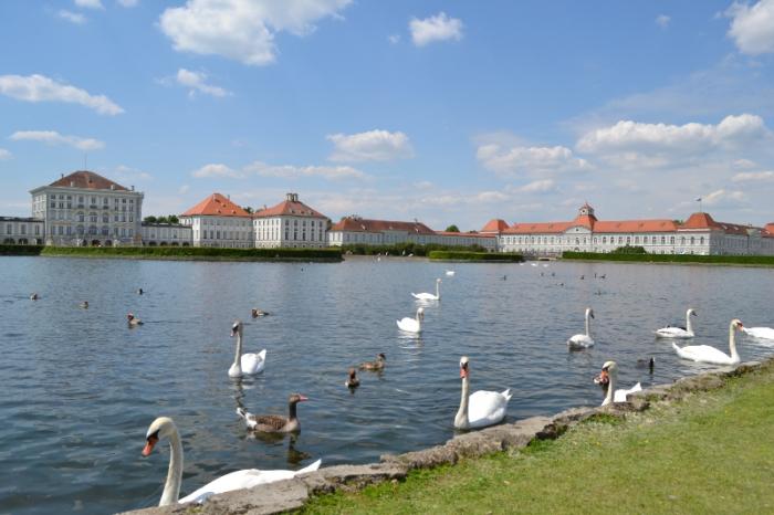 В воскресенье же я решил, что нечего ходить по центру и надо посветить имеющиеся полдня для какого одного значительного объекта. Выбор пал на Нимфенбург – огромный дворец с громадным парком, в центральной части которого идет аллея с античными статуями по сторонам. К сожалению, в путеводителе не было сказано, что от ближайшего метро почти час ходу. Путь проходил мимо канала, в котором плавали утки и плескались огромные рыбины. Перед входом в дворец канал превращался в искусственный пруд, на котором плавали куча всяких водоплавающих, от смешной породы уток до прекрасных лебедей.