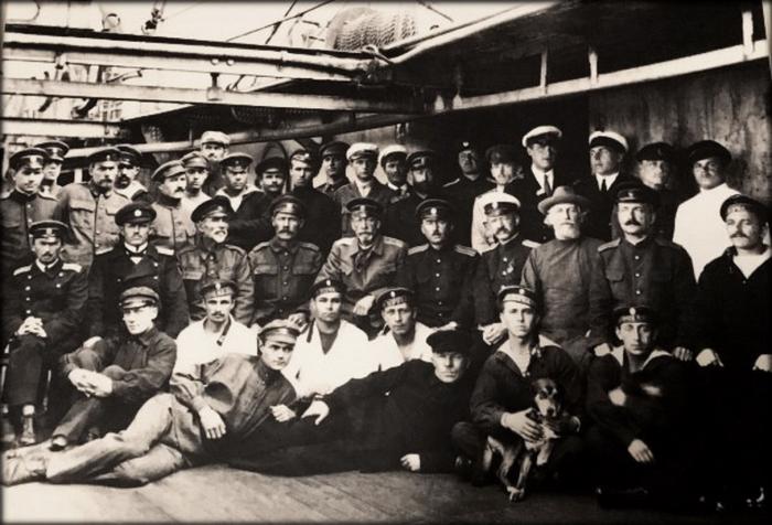 «Я хорошо помню эту церемонию последнего подъема и спуска Андреевского флага, которая прошла на эсминце «Дерзком». Собрались все, кто еще оставался на кораблях эскадры: офицеры, матросы, гардемарины. Были участники Первой мировой войны, были и моряки, пережившие Цусиму. И вот в 17 часов 25 минут прозвучала последняя команда: «На Флаг и Гюйс!» и спустя минуту: «Флаг и Гюйс спустить!» У многих на глазах были слезы…