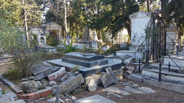 В разных местах на кладбище невооруженным, что называется, глазом просматривается глубокое запустение, многие могилы неухоженные. Я увидел несколько склепов, разрушенных, видимо, во время землетрясения, с торчащими наружу полусгнившими гробами и костями людей – судя по выбитым на мраморе надписям, это французские захоронения.