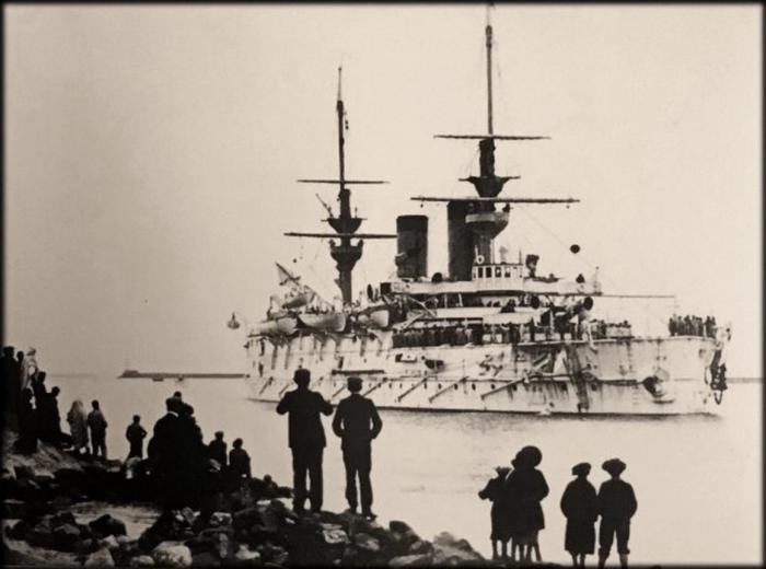 Добрались до африканского побережья и некоторые «старые калоши» — такие как переквалифицированный в линейный корабль броненосец «Георгий Победоносец», ставший впоследствии плавучей гостиницей для русских семей. На его специально оборудованной палубе проходили первое время православные церковные службы — Русская эскадра прибыла в Бизерту со своими корабельными церквями и морским духовенством. В составе эскадры насчитывалось 13 православных священников.