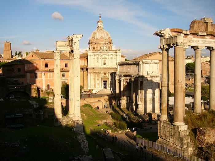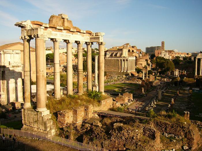 С запада на восток через весь Форум проходит самая известная улица Древнего Рима — Via Sacra (Виа Сакра), или Священная дорога, которая начиналась на Марсовом поле и заканчивалась возле Капитолия у храма Сатурна…