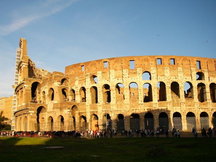 От Университета до Пьяцца Навона (пьяцца, т.е. площадь, по-моему звучит очень романтично) пешком 15 минут. Заодно прошлись мимо Пантеона. Пантеон — бывший «храм всех богов», а теперь христианская церковь — сохранился лучше своего ровесника, Колизея. В гигантском куполе Пантеона нет ни одного окна. Свет проникает сюда сквозь единственное отверстие в вершине купола, символизируя тем самым единство всех богов. Говорят, если встать в квадрат прямо под отверстием, то боги отпустят все грехи…
