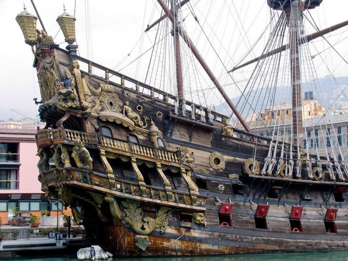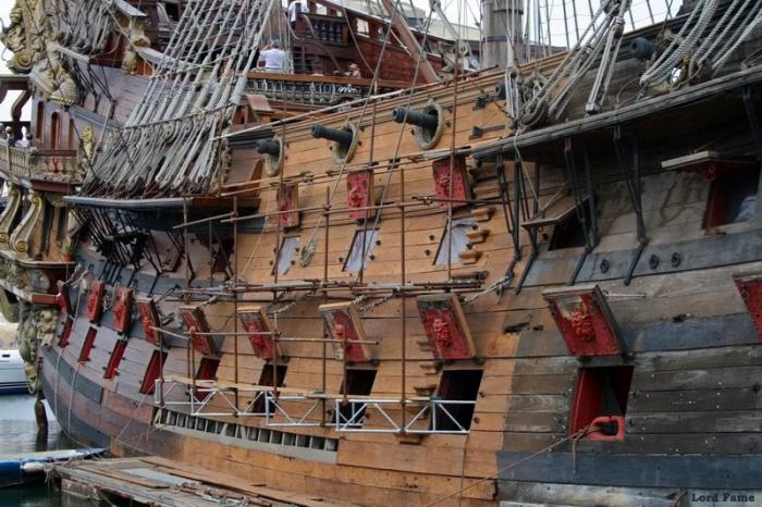 Это оказался пиратский галеон «Нептун» — копия испанского корабля 16 века. Этот корабль был построен в 1982 году для съёмок Романом Полански фильма «Пираты». Подошли поближе…