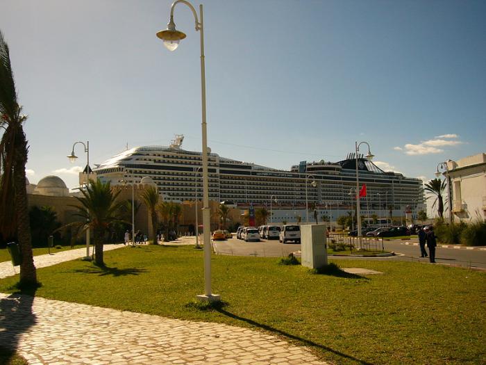 Когда мы сошли с корабля, то сначала в здании таможни нам проштамповали визовые карточки, которые мы заполнили заранее (ведь это же не Шенгенская зона). Хотя в Тунисе было жарковато, пришлось одеться в джинсы и спортивные батники. Надо уважать чужие традиции.