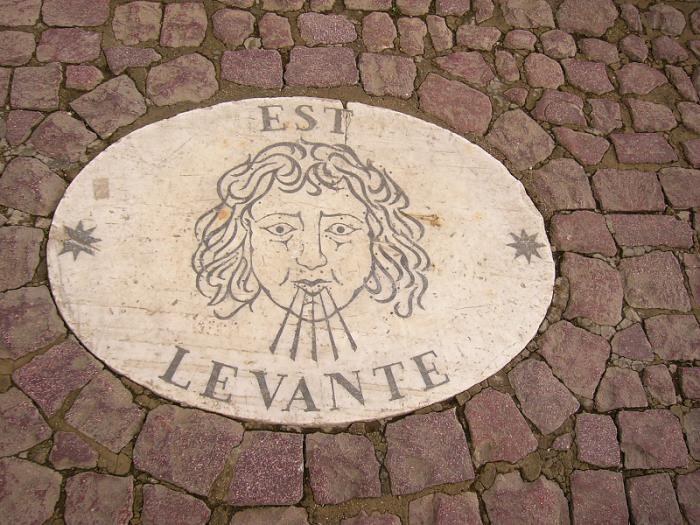 Вокруг обелиска в брусчатку уложены медальоны Бернини, на которых ангелы «дуют» в определенном «направлении ветра»…