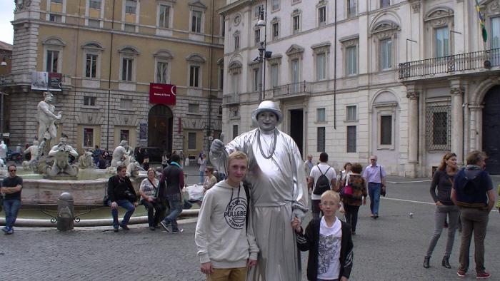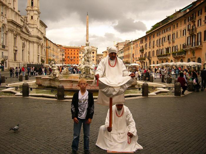 Вскоре мы вышли на Пьяцца Навона. Нас встретили вот такие милые живые статуи, сразу понимаешь что попал в мир художников и артистов…