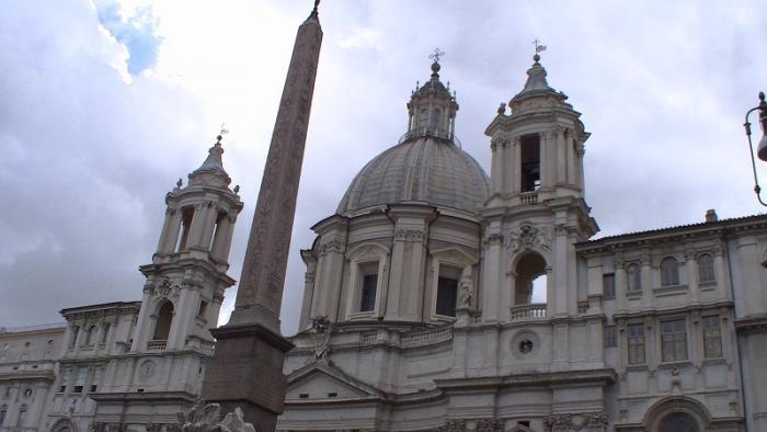 Напротив фонтана Четырех Рек стоит церковь Сант'Аньезе ин Агоне. Церковь посвящена мученице Агнессе, одной из самых почитаемых в Риме святых.