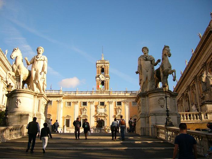Поднимаясь по одной из главной лестниц, нас встречают статуи близнецов Диоскуров, покровителей республиканского Рима…