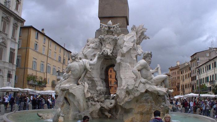 В центре Пьяцца Навона стоит фонтан Четырех Рек — шедевр Бернини.