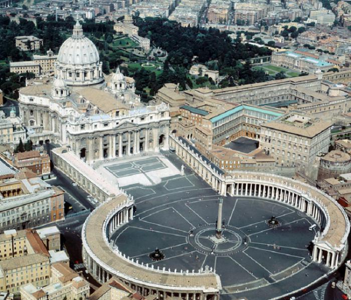 Формально площадь Святого Петра, находится не в Риме и даже не в Италии, а на территории города-государства Ватикан. Направляясь к собору, достаточно перейти через неширокую белую линию со столбиками по внешнему периметру площади – и вот вы уже в Ватикане. Полшага назад – в Италии.