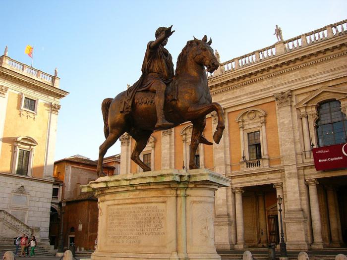 В центре площади бронзовая конная статуя императора Марка Аврелия…