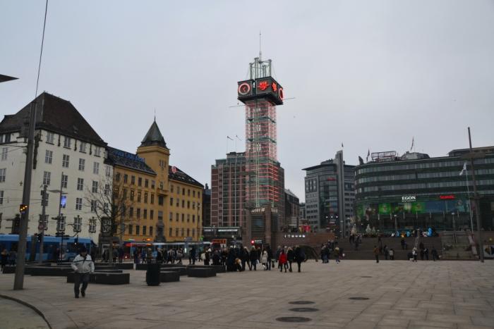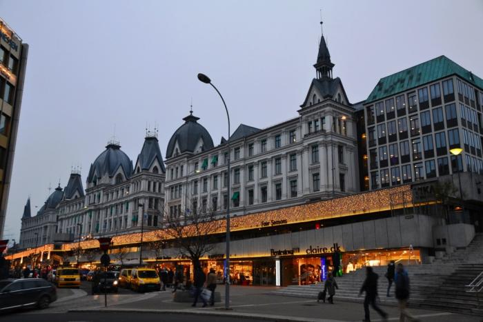 Сорок километров до города поезд преодолел за двадцать с лишним минут, вышли мы на станции железнодорожного вокзала Oslo S, откуда путеводитель рекомендовал начать знакомство с городом, продвигаясь по главной улице норвежской столицы.