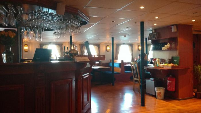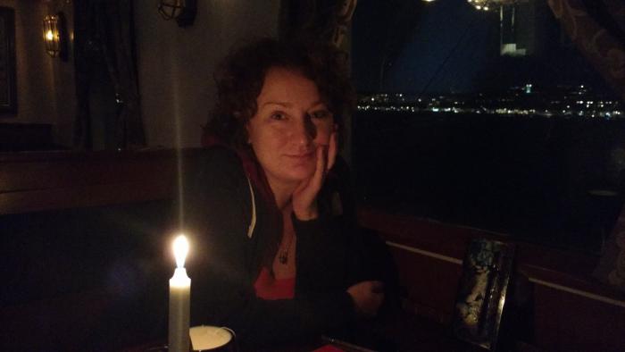Начинало темнеть, и мы отправились в сторону отеля. Силы оставались только на ужин при свечах: 14 пройденных километров и почти бессонная ночь сказывались. На ужин в ресторане корабля заказали пиццу, колбаски с картошкой в сырном соусе, пиво и чай на 380 Kr.