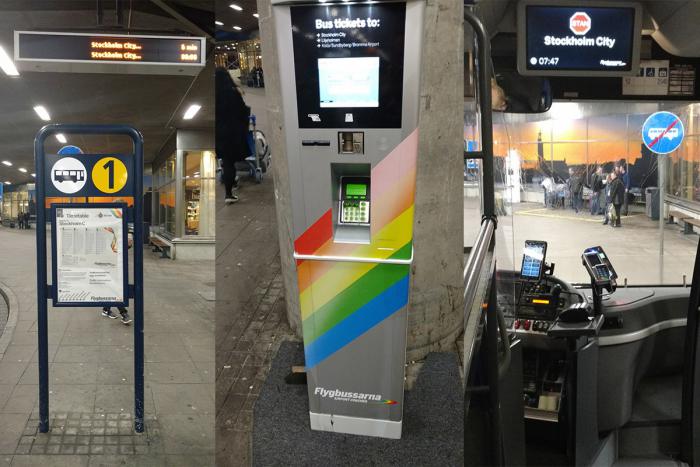 В аэропорту Стокгольма (Арланда) мы были по расписанию в 7:40 утра (по местному времени). Пошли искать автобус , который идёт до центрального вокзала Стокгольма. Билеты на него мы приобрели ещё в Москве через мобильное приложение. Стоимость 99 Шведских крон (Kr) на одного.