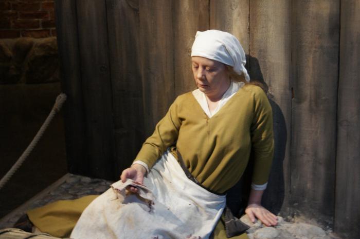 Экспонат «женщина, заболевшая чумой». Она настолько реальна, что становится немного не по себе.