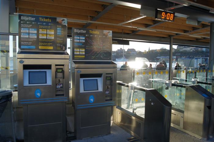 Билет на паром такой же, как и на другой общественный транспорт (обозначается SL). Есть различные тарифы на разные зоны (город поделён на 3 зоны: А, В, С) и количество времени на проезд. Купить билеты можно в билетных автоматах на остановках, на станциях метро, в киосках с прессой – Pressbyrå, у кассира, а также через мобильное приложение.