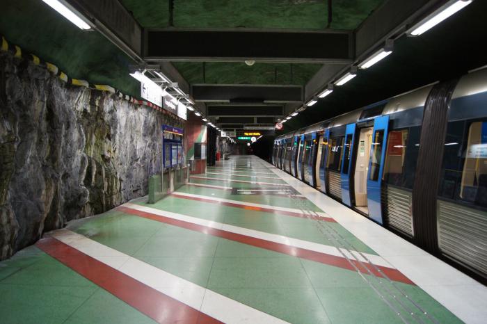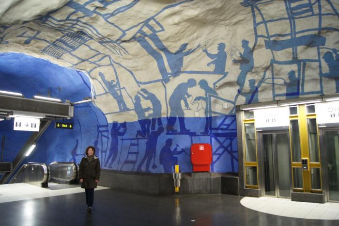 Метро Стокгольма можно тоже отнести к достопримечательностям. Станции вырублены в скалах и красиво декорированы. Мы посетили несколько из них.