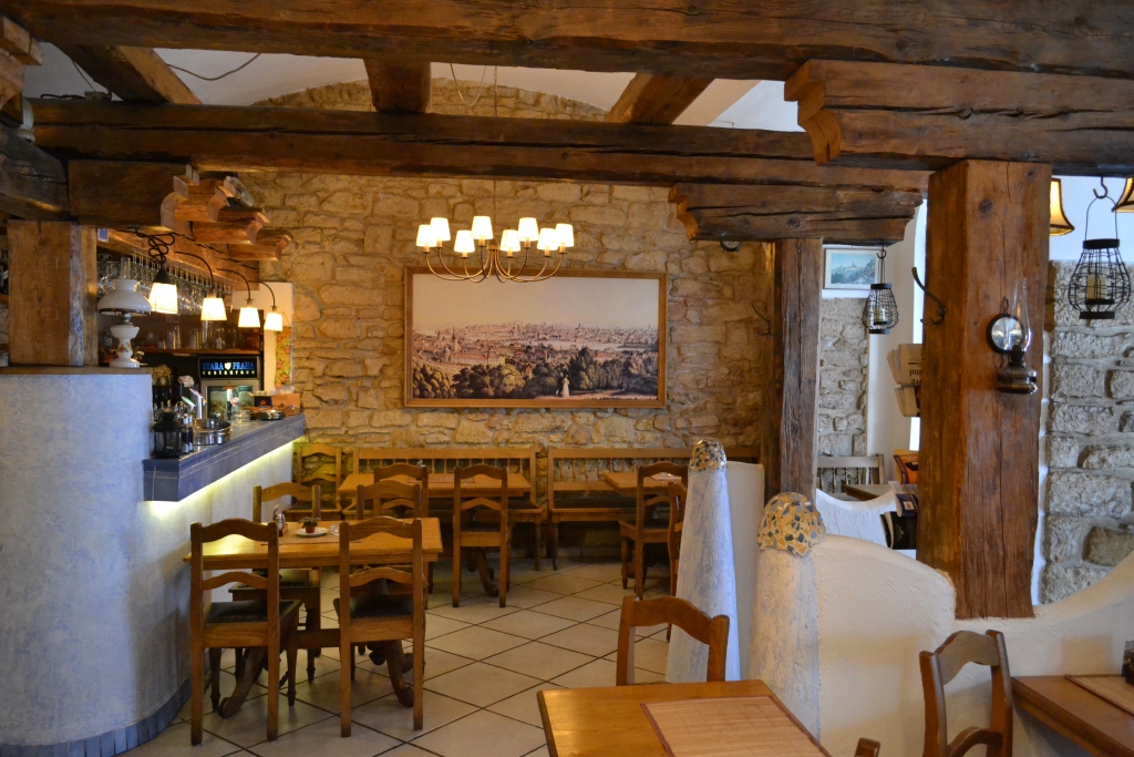 После утоления духовно-эстетического голода во мне по обыкновению проснулся голод животный. И я, по совету друга, пошёл в заведение под названием «Старая Прага». Не долго думая, выбрал блюдо, о котором слышал ранее — печено вепрево колено. Это запечённая «кабаняча» рулька, приготовленная по особому рецепту. Вдобавок к ней приносят 2 вида горчицы, нарезанный лук, маринованные огурчики, хлеб. Просят за такое удовольствие около 7 евро. Только потом я понял как ошибся что взял это блюдо, выражаясь кабанячим языком, на одно рыло. Съел чуть больше половины под пиво, а наелся на полтора дня, очень вкусно! Пиво пил Пилснер — и светлый и тёмный, понравилось. Кстати, заметил интересную закономерность — определённые заведения сотрудничают с определённой маркой пива. С чем это связано не знаю. Может потому что в Чехии любое заведение начинается именно с пива) Интерьер и атмосфера «Старой Праги» понравились, приемлемые цены, рекомендую к посещению