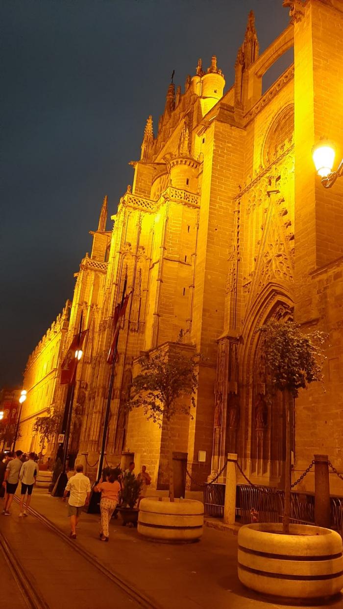 Чтобы не было путаницы, сразу сообщаю, что в Севилью мы, я и моя супруга, прилетели авиарейсом из Тенерифе. Случилось это 14.06.2022. Самолёт находился в пути чуть более двух часов. Мне досталось случайным бесплатным образом место в первом ряду, напротив вагоноважатых и рядом с основным ВХОДОМ-ВЫХОДОМ. Полёт прошёл в штатном режиме, за исключением того, что сзади сидела разновозростная семейка испанцев, которые просто орали неистово, общаясь между собой. Ну, колхоз — он и есть колхоз. Вытерпел.