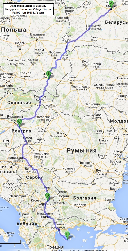 Маршрут: Минск -> Жешув(Ночлег)Польша -> Уйхартьян под Будапештом (ночлег)Венгрия -> Вране (ночлег) юг Сербии -> конечный пункт Халкидики Касандра Paliouri Греция