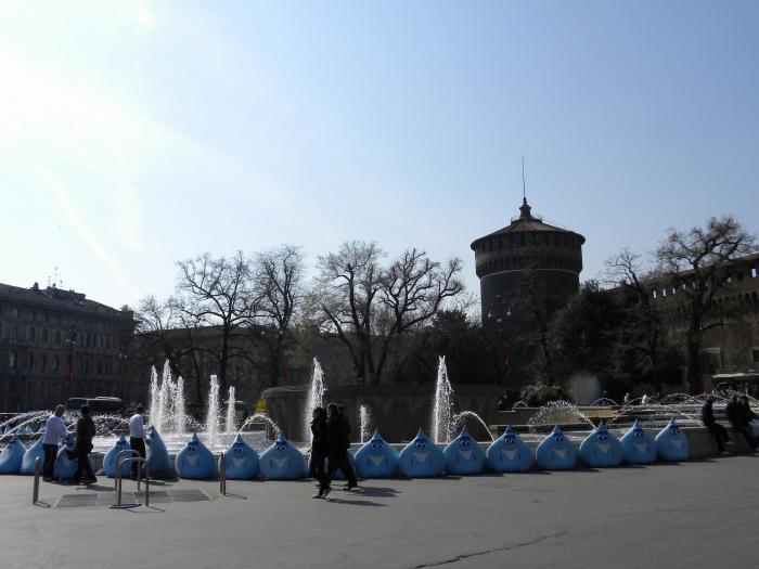 В третьих. Прогрессивная общественность Милана, озабоченная судьбой водоснабжения мира, собралась у фонтана на площади перед замком и начала готовиться.