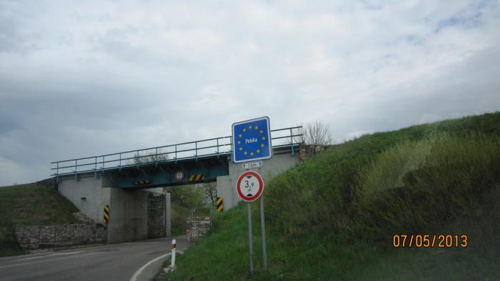 В Польшу «Ирка-навигаторша» повела нас околицами, по деревням и закоулкам.Этот знак стоит на повороте дороги и заранее его не видно. Естественно, фотик не был подготовлен и мне пришлось развернуться, еще раз пересечь границу, снова развернуться… Ну, вы уже поняли; при этом еще мой мозг перерабатывал душераздирающие признания о том, как некоторые из нашего экипажа полжизни мечтали сделать фото именно этого знака…