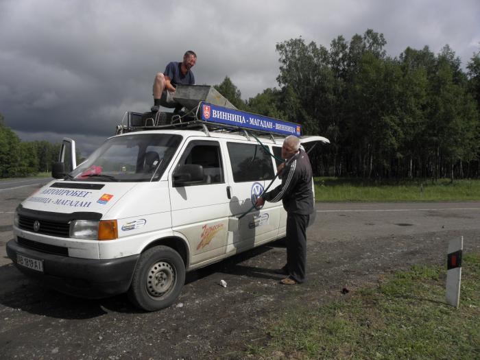 С момента когда пришла мысль-«Хочу в Магадан» до реального осуществления этой затеи прошло полтора года. И вот сегодня 08.07.2010 года пройдены первые 2000 тысячи км., отмеченные быстрым прохождением таможни и довольно приличным качеством дорог в Европейской части России. Удивило количество экипажей Дорожно патрульной службы в Пензенской и Ульяновской областях — практически на каждом десятом километре. Из достопримечательностей зацепившихся в памяти-Жигулевская ГЕС. Едем на Фольксвагене Т-4 транспортер 1999года (Рекс) 2.4 дизель.Расход около 10 л. на 100км. В состав команды вошли 4 человека: Я Рыженков Игорь 48 лет от роду. Автор идеи пробега.Водительский стаж -24года. Кобрин Валентин 44 года вод.стаж 26 лет. Главный механик, связист, компютерщик, повар в общем старшина. Максименко Юрий (Макс) 1972года. Стаж вод.25 лет. Профессиональный моротогонщик. В пиве рубит лучше, чем в матчасти Рекса. Скоробогач Николай(1969г.). Вод.стаж 6 лет. Достоинства и недостатки будем определять по ходу поездки.